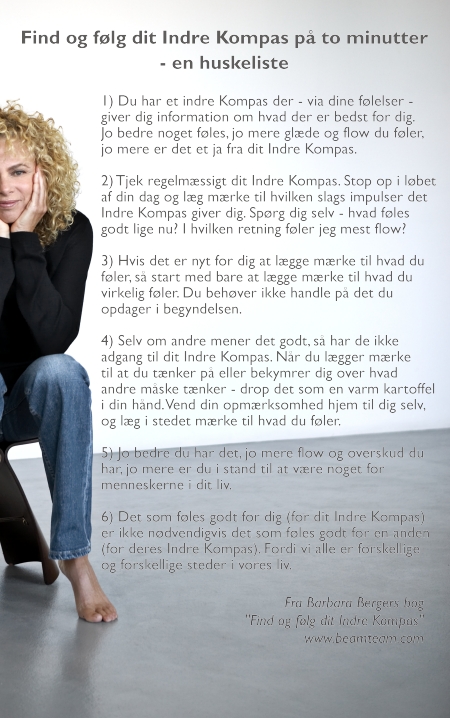 Barbara har skrevet en rigtig god Ugens Artikel til LevLykkeligt.dk hvor hun kort beskriver nogle af de grundlæggende punkter som hun kommer ind på i sin nye bog. En slags huskeseddel til at følge sit Indre Kompas (også kaldet for "Find og følg dit Indre Kompas på to minutter"!). Klik her for at læse artiklen. Magasinet Liv & Sjæl bragte fornylig et stort interview med Barbara, hvor hun fortæller om baggrunden for sin nye bog. Klik her for at læse artiklen.